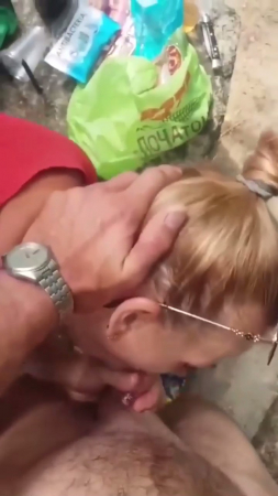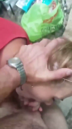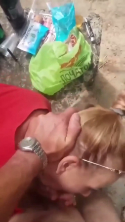 "Нет" - непонятно почему возмущается баба с солнечными очками на голове. Она берет член голого мужчины в рот и начинает делать ему минет, но он держит за голову и самостоятельно пихает даме сердца в башку. Ей остается только держать пасть открытой и слушать как супруг стонет прямо в мобильный телефон, на который он снимает свое любительское видео. Его движения практически с каждой секундой ускоряются, он чувствует приближающийся оргазм, но не предупреждает о нем, чтобы кончить в ротик благоверной, которую он привел отдохнуть на природу, заодно выпив немного дешевого алкоголя.