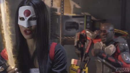Порно пародия на популярный фильм "Отряд самоубийц". Вместо боевых сражений здесь страстные баталии в постельных сценах. Катана и Харли Квинн лижут друг другу мокрые пилотки и дрочат клиторочки пальчиками, чтобы доставить друг другу наибольшее удовольствие. Чаровница сосет Капитану Бумерангу, а потом получает твердый член в вагину, сев на твердый ствол сверху. И групповая сцена в тюремной камеры. Поклонники и фанаты фильма разочарованными не останутся.