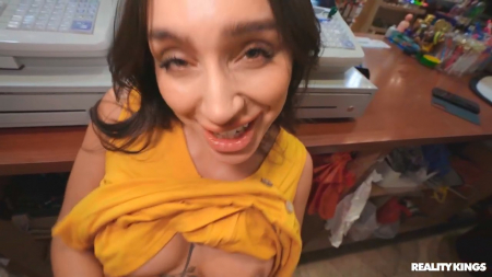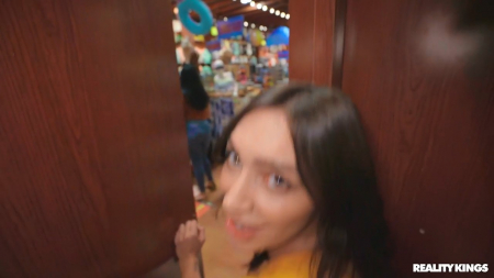 После отсоса пошла прогуляться по магазину со спермой на лице
