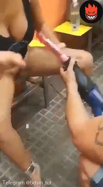 Бабенка без штанов села на стул, раздвинув ноги. Всем находящимся рядом она высказала скептические мысли на счет перфоратора с насадкой в виде дилдо. Окружающие только посмеялись и стали наблюдать за короткостриженной красоткой в очках, позволившей медленно ввести игрушку в пизду. Как только скорость аппарата изменилась на максимальную, ее рот открылся очень широко и уже буквально через несколько секунд та бурно кончила, встав, чтобы слезть с игрушки. Латинка посмотрела на свою киску, убедившись, что та не порвалась, а потом взяла перфоратор, обсмотрев его и подумав "надо бы себе такой заиметь!".