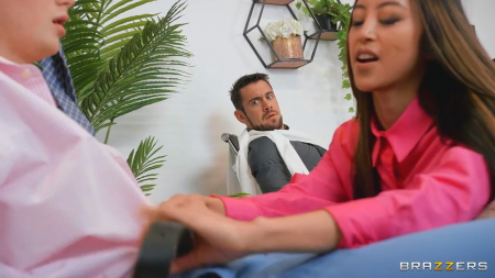Пока два остолопа разговаривают и обсуждают свою единственную коллегу-девушку, последняя просто вскипает от количества бумажек и сложности работы. Так еще и эти двое оглядываются на ботанку в очках, тыча пальцем. В какой-то момент ее это все задолбало и азиатка решила показать кто кому должен подчиняться, да и новые классные чулочки тут как раз к месту. Сперва пацанята даже не поняли шутит она или нет, но когда сотрудница стала отсасывать одному и подрачивать ногами хуй второму, поняли насколько все серьезно и отжарили стройную потаскушку на офисном диване, ведь это пятница, нужно начинать веселиться изо всех сил!