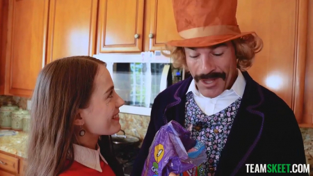 Проснувшись утром совершенно голенькой, маленькая девушка обнаружила рядом с собой целую упаковку любимых сладостей вместе с золотым билетом на секс-фабрику Вилли Вонки. Помыв волосатые подмышки и пах, красивая малютка отправилась к старому извращенцу, чтобы посмотреть на его дом. Но не вкусных конфет хочет юное дарование, она хочет лишиться девственности с самым известным сказочным персонажем этого города и, чтобы этот процесс подсластить, мистер Вонка положил гостье новую конфетку на язык, чтобы дефлорация влагалища прошла как можно более вкуснее. Да и сама сперма так намного слаще!