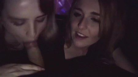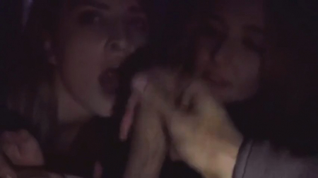 Парнишка повел двух знакомых подружек в кинотеатр, чтобы просто хорошо провести время. Прямо во время сеанса бисексуалочки решили его отблагодарить своими ротиками, так как пилотки тут не расчекрыжишь - слишком много людей сидят вокруг, хоть и кромешная тьма. Обе синхронно спустились к ногам на ряд и крупным планом облобызали вытащенный из розовых трусов хуй, делясь им друг с другом и немного оглядываясь по сторонам. Чувак кончил одной прямо на лицо, вторая же оказалась чуть покрасивее и даже поумнее - она высунула язычок под не очень сладкое угощеньице.