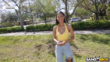 Разговорчивый пикапер притворился контент-мейкером на youtube, чтобы незнакомка с ним поговорила. Она приехала в Майами с друзьями из Техаса и намерена отдохнуть, как раз к ним держит свое направление пешком. Возможность легких денег взяла верх и она подошла поближе к фургону поговорить. Несколько долларов смуглянка получила за простые вопросы, но чтобы получить сразу 500 баксов нужно залезть в машину к какому-то подозрительному ниггеру, щупающего себя за хуй, и показать красивые сиськи. Малышка легко справилась с этой задачей, а раз она прилетела в другой штат хорошо отдохнуть, то ей нужно еще и натрахаться вдоволь, отбив затраты на путешествие.