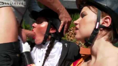 Три наездницы прикупили себе новые наряды, будто соревнуясь друг с другом. Находятся они на чужой ферме, совмещенной с ипподромом. Хозяина земель долго ожидать не пришлось - мужчина в дорогой рубашке пришел, ахуел и выгнал одну из девчонок прочь, оставив только самых провинившихся. Их он собрался наказать собственным пенисом. Для этого парень усадил на корточки перед собой симпатяг и дал обеим пощекотать головку гландами, после чего разорвал их белые штаны и засадил каждой в попку под открытым небом. Последнее им очень понравилось - девки даже не догадывались, что являются бисексуалками.