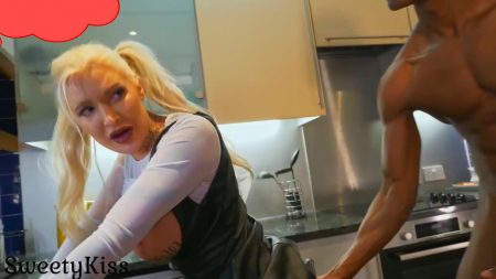 Блонда жестко ебется в очко на кухне с негриллойHD