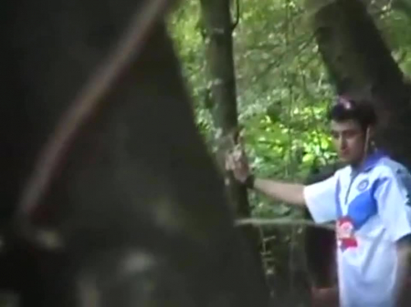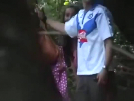 Довольно приятно наткнуться на прогулке на занимающихся спонтанный сексом молодых людей в лесу. Парочка постоянно оглядывается, но на глаза им не попадается прохожий, снимающий с большого расстояния телочку, наклонившуюся возле дерева с выгнутой спиной. Счастливчику открывается, конечно, более пикантный вид сверху, но и сбоку задница миледи выглядит весьма аппетитной - не зря бойфренд обкончал ее и даже не вытер, оставив это дело для брюнетки со спущенными штанами. Нет сомнений в том, что подглядывание подлинное.