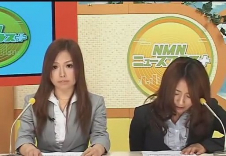 Как обычно, азиаты отличаются от остальных наций нормами морали. Для них секс в прямом эфире - это нормальное явление. Очаровательные ведущие читают новости, а в это время под столом два мужчины лижут и и дрочат девушкам пилотки. Симпатяги стараются не показывать своего удовольствия зрителям. А после девушкам на стол ставят две чаши, в которые ведущие пописали.