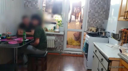Маргинальная троица разговаривает про запрещенные вещества, на кухонном столе стоит бутылка пива единственной в компании женщины. Все выглядит даже слишком естественным, чтобы быть правдой. Один из присутствующих пошел мыться и перед уходом поцеловал вторую половинку, полапав ее за сиськи. Он будто вскользь бросил взгляд на спрятанную скрытую камеру, на которую попало дальнейшее общение сожительницы с гостем, который также облапал деву между ног и сверху, а после принялся трахать будто бы он и есть бойфренд этой шлюшки. С ванной при льющейся воде не было слышно что происходит, зато есть видеодоказательства измены.