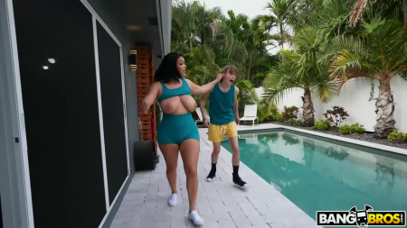 Молодой парень гулял по заднему двору когда заприметил соседскую толстушку - ее грудь и жопы были такие притягательные, что мальчик остался подглядывать как та разминается. Вдруг он заметил, что обтягивающие шорты чутка порвались, образовав маленькую дырку. Захотев увидеть немножко больше, он на цыпочках подбежал сзади и разорвал одежду на шикарной жопе негритянки. Та его уже не отпустила домой и показала сиськи, предложив их облить маслом. Вскоре она отсосала его стояк и вместе соседи отправились к девушке на кровать для продолжения более близкого знакомства. Ashlyn Peaks & Spikey Dee - Naughty Neighbor Gets Caught.