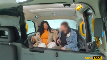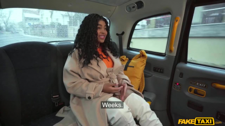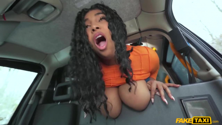Таксист подсадил кучерявую негритосину, которая совсем не знает куда ехать. Она с трудом говорит по-английски, так как ей родной - испанский язык, но она всеми намеками и объяснениями дала понять незнакомцу самое важное: она сидела в тюрьме последние шесть месяцев и только что вышла оттуда крайне недотраханной и водителю такси выпала возможность стать тем первым, кто ее отымеет в шикарное отверстие и посмотрит на огромные сиськи, которые говорят все сами за себя. Совпало две вещи: по пути был заснеженный лес и член таксиста был подходящего размера. [FakeTaxi] Thayana Babyy - Huge Tits do the Talking.