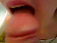 Ревнивая россиянка не хотела бы, чтобы супруг заглядывался на других женщин в рабочем коллективе, поэтому прежде, чем тот примет душ, она села пред ним на корточки и начала отсасывать, даже разрешив записать это на старенький телефончик. Блондинка сосет, проводит языком по головке и уздечке, немного заглатывает и все повторяется вновь со съемкой вблизи. Ничего примечательного, просто минет перед походом мужа на работу.