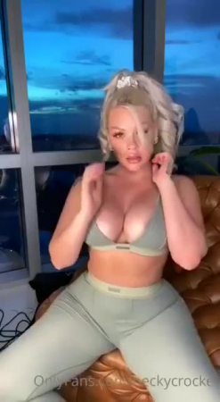 Это одна из тех женщин, у которых большая грудь, огромная задница и при этом довольно тонкая талия. Заинтересовались? Ну тогда погнали! Бекки Крокер в обтягивающей одежде для спортивных занятий говорит много пошлостей на английском языке, сплевывая себе на обласканные руками сиськи. После этого светловолосая милф снимает с себя штаны и показывает огромную задницу встав на колени и повернувшись в камеру задом. Но не для этого было записано онлифанс-видео, а для того, чтобы зритель посмотрел как модель сладко мастурбирует киску соло круговыми движениями пальцев по клитору.