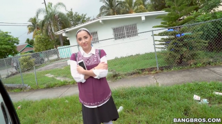 Мужики заехали в поселок и заблудились. Они попросили местную девушку показать им дорогу и девка села в автомобиль. Уже в автомобиле телке предложил парень поебаться и она, недолго думая, согласилась. После страстного секса в движущейся машине под крышей, украшенной автографами таких же шлюх, побывавших в этой машине, парни выкинули одежду шалавы в лужу, а потом и еще вышвырнули на улицу.