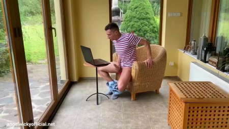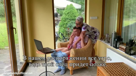 Сидящий возле окон и прозрачных дверей парень с ноутбуком решил подрочить на любимую порноактрису. Он умолял актера войти в нее в коротком видео и когда это произошло, стал дрочить еще яростнее. Домой вернулась мачеха, заметившая как он дергает свой пенис. Ей было забавно узнать, что он дрочил именно на ее видео от первого лица. Так как порноактрисам нет разницы с кем трахаться, она сделала минет сыну, подрочила его большой член между сисек в лифчике, а также дала трахнуть красивую киску. При этом они оба договорились ничего не рассказывать о профессии и случившемся отцу. Angel Wicky - Mom And Stepson.