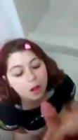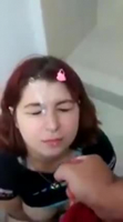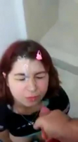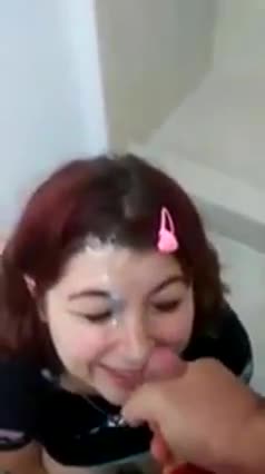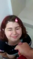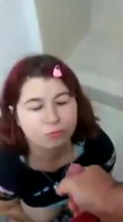 Молоденькая извращенка и ее бойфренд заперлись вместе в шумном месте, похоже, в туалете универа. Девочка с голыми сиськами без трусиков сидит на корточках и теребит фасолинку пока ее бойфренд дрочит перед симпатичным лицом. Ребята засняли самый ответственный момент на телефон - когда большое количество спермы вырывается из маленькой хуйка прямо на мордашку студентки. Она улыбается и веселится - сама не ожидала, что так обильно обкончается на нее молодой человек. Это для нее как комплимент.