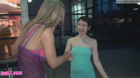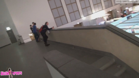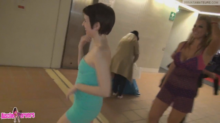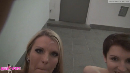 Aische Pervers вместе со своим оператором находит симпатичную телку для секса втроем. После недолгих поисков Аиша находит возле торгового цента симпатичную короткостриженную девушку по имени Ванесса. Вдвоем телки сосут член оператора. не особо то от людей посторонних скрываясь. Очаровашки доводят мужика до оргазма, а потом с обнаженными сиськами идут на выход из центра.