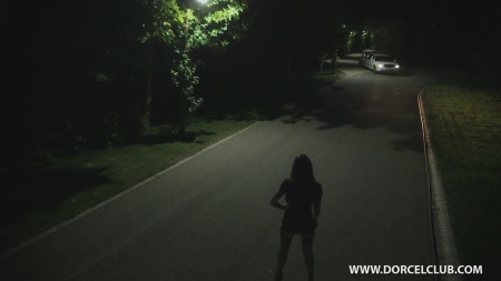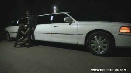 Очаровательная стройняшка в сексуальном наряде встала на выезде из парковки и преградила путь лимузину. Как только водитель вышел из автомобиля, симпатяга сразу же присела перед ним и начала его член сосать. После этого, конечно же, мужчина устоять не мог и выебал телку в очках посреди освещенной дороги.