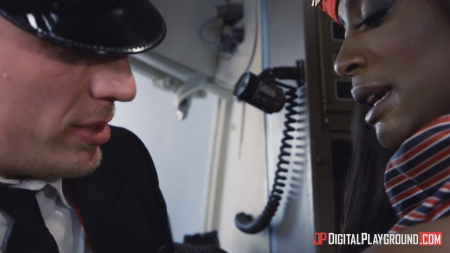 Сексуальные террористки прям а не стюардессы. Великолепная негритянка ворвалась в кабину пилота и начала ласкать мужчину, включив "автопилот". За подобными развлечениями парочку застукала вторая стюардесса - губастая телка с большими сиськами. Вопреки логике, девушка присоединилась к случайным любовникам и подруги тщательно отымели пилота. После потрясающего секса втроем и бурного оргазма, озабоченные телки захватили самолет.