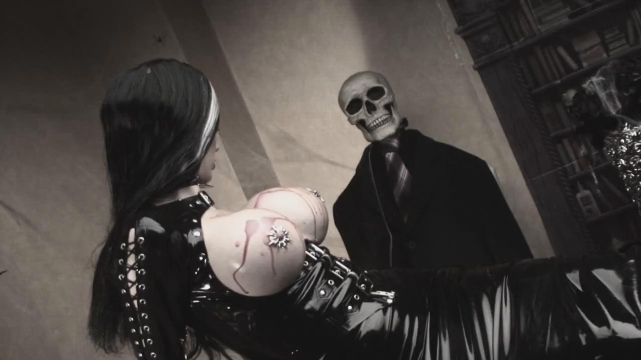 Сочная грудь в латексном костюме готичкиHD