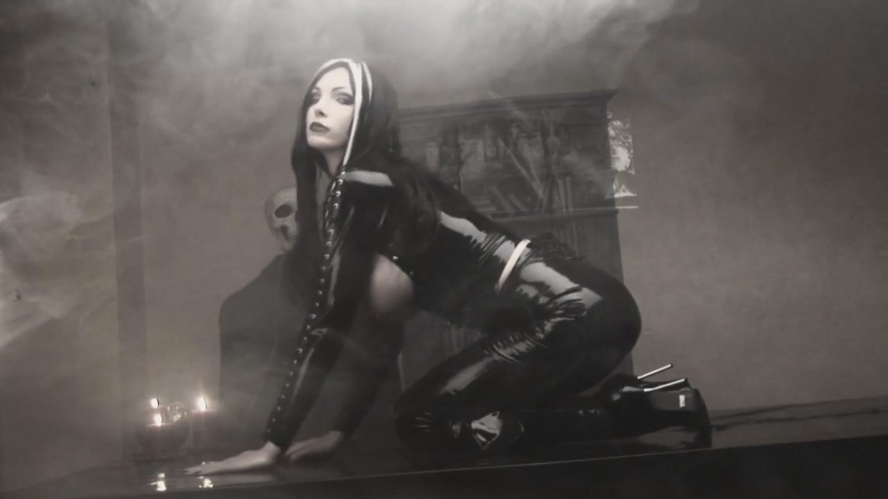 Видели в живую ритуалы готов? Вам выпала уникальная возможность понаблюдать за подобным действием. И уникальна эта возможность совсем другим - дело в том, что обряд подготавливает сексуальная девушка в латексном костюме, да еще и с обнаженной грудью. Упругая сочная грудь притягивает взгляд и пробуждает воображение. Девушка к тому же поливает сиськи горячим воском.