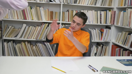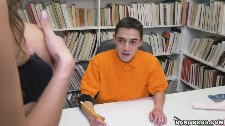 Похотливой работнице библиотеки наскучила ее работа и тетке захотелось хоть как-нибудь развлечься. И тут, на счастье библиотекарши, посетил книжный храм молодой парень, которому тоже учеба была не очень интересна. Развратный библиотекарь показала большие сиськи юноше, а затем под стол залезла и сделала парню потрясающий минет, получив после длинный член в мокрую киску.