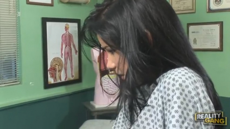 Прям порно детектив какой-то. К доктору на прием пришла прелестная пациентка с жалобами на то, что у нее нет вагины там где она, в принципе, быть должна. Врач не поверил стройняшке и когда увидел все своими глазами очень удивился. Он начал искать пилотку милашки по всему телу, и когда сдвинул в сторону длинные черные волосы пациентки, он очень удивился. Под густыми волосами нашлась вагина, которую врач ошарашенной девушке принялся наглаживать. "Уродство" не оттолкнуло мужчину, наоборот, разожгло в нем любопытство, а когда прелестница томно застонала, мужчина принялся лизать вагину (и наклоняться не пришлось). В общем, доктор оттрахал девушку в ее киску, а когда в порыве страсти глубоко засадил, то член вылез у девушки изо рта.