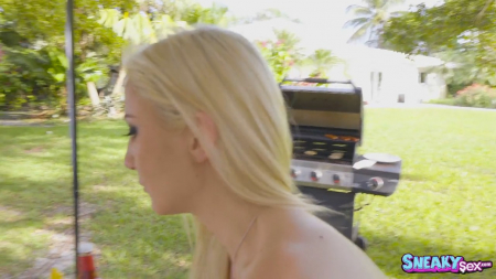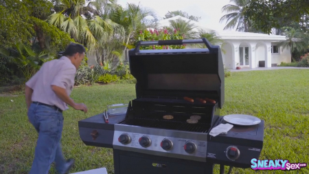 Очаровательная девушка пригласила бойфренда в гости и ребята устроили пикник у себя на участке. Молодой человек возбужден внешним видом своей подружки и, казалось бы, набросится на девушку вот вот, но есть небольшое препятствие. Отец девушки также на пикнике присутствует. Озабоченная красотка находит выход из ситуации. Сначала сосет парню, прикрыв его член булочкой для хот-догов. Или улучает момент, когда отец отвернется. А когда мужчина в дом ушел, привлекательная малышка разделась и отдалась своему другу. А чтобы спрятаться от отца креативная парочка забралась на дерево.