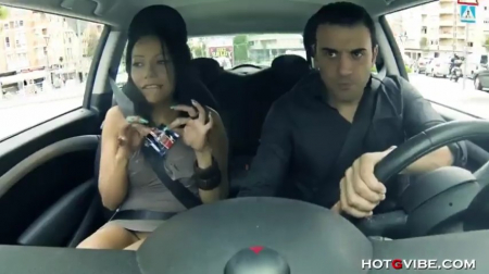 Симпатичная брюнетка ловит попутку. Пока девушка едет до места назначения,она решает подрочить. Недолго думая брюнетка осуществляет задуманное. Сучка ласкает грудь, потом закидывает ноги на панель управления и начинает ласкать киску. Водитель конечно же в шоке и пытается остановить девушку, но безуспешно. А малышка тем временем все продолжает дрочить и доводит себя до струйного оргазма.