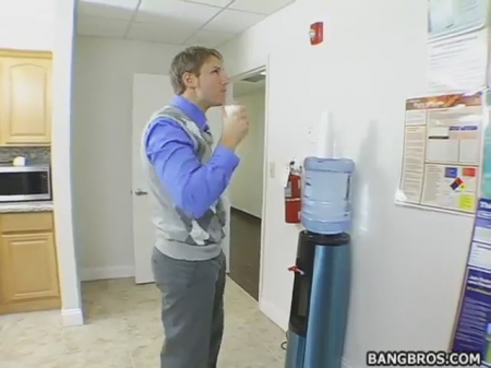 Симпатичная телка совсем не о работе думает, пока сидит в офисе. Думает девушка только о молодом коллеге, секса с которым ей отчаянно захотелось. Но как подступиться к скромному пареньку? Начала его милашка атаковать в чате, но на разговор мужчина не идет. Более смелой попыткой стала атака полуобнаженными фотками - это хоть и вызвало в мужчине волнение, но вновь мимо. Сдаться так легко милашка готова не была, и пустив все свое очарование в ход, все же добилась желаемого. Перевозбужденный мужчина побежал в туалет, а девушка проследовала за ним. Проявив находчивость, симпатяга получила потрясный секс - была выебана твердым длинным членом в узкую пизденку.