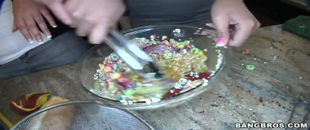 Три опытные дамы и отличные домохозяйки пришли к одинокому мужчине в гости чтобы приготовить несколько блюд и вместе покушать. Но до еды дело не доходят, так как со временем девушки стали раздеваться и отвлекаться. С каждой минутой их киски становились более влажными и они разделись. Все это время пара мужчин смотрела как голые девушки готовят на кухне им еду. Взрослые мужики и не знали, что через несколько минут они знатно оттянутся с телочками и трахнут их на том же столе, на котором и происходила готовка