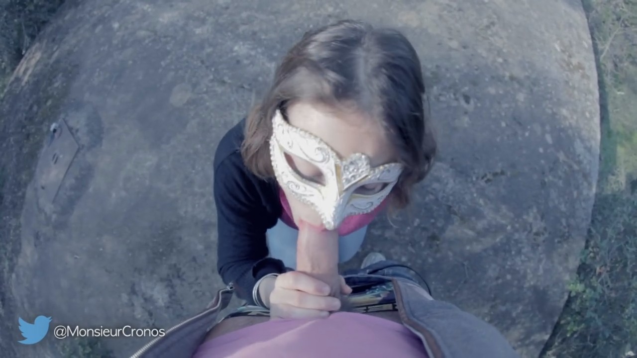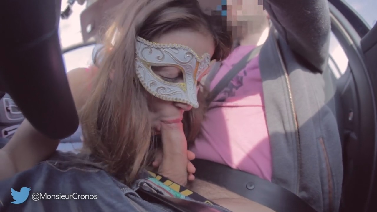 Молодые ребята постоянно совершают безумные поступки, а почему бы и нет? Ведь сейчас самое подходящее время для подобного рода проделок (потом будут заботы и проблемы)! Любовнички едут в живописное место, чтобы предаться сладострастному единению на лоне природы. Но девушка не выдерживает и сосать начинает прямо в едущей машине. К сожалению, милашка должна была в скором времени прерваться - ребята доехали до места назначения! В скором времени прелестница в маскарадной маске продолжила показывать свои навыки в оральном искусстве, после чего от благодарного парня получила твердый член в свою дырочку.