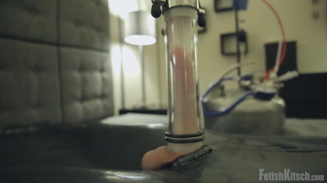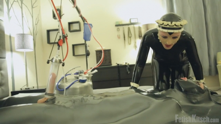 Телка в латексе садится на лицо и доит автоматической помпой членHD