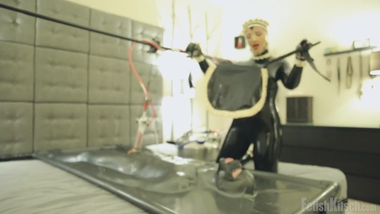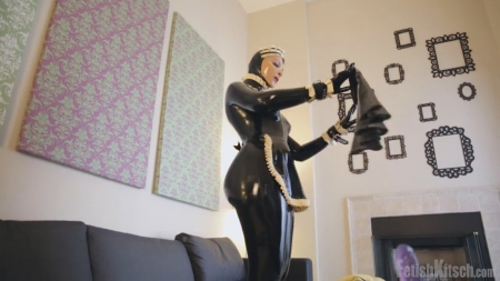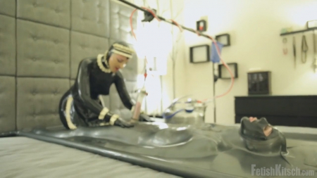 Зачем люди носят латексные наряды? Наверняка, многие задавались подобным вопросом. Ответ очень прост - латекс облегает тело, создавая эффект "второй кожи" - он не только позволяет человеку скрыть какие-то изъяны, но и усиливает ощущения во время секса, делая их более яркими и насыщенными. Сексуальная девушка в сплошном костюме из латекса (кстати, даже глаз радуется при виде подобной картины) делает уборку. Но, зайдя в комнату, в которой получает удовольствие молодой мужчина, девушка сразу забывает о своем занятии. Возбужденная цыпа расстегивает костюмчик на интимном месте и садится на лицо "закованного" под латексный материал любовника (предварительно приласкав ему яйца - поскольку член был занят помпой).