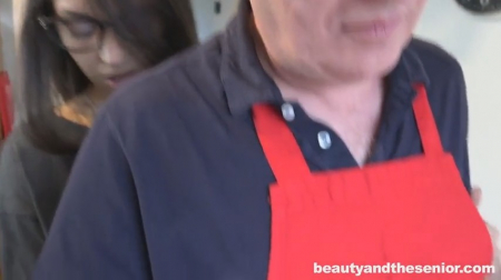 Как хорошо лениться, когда за тебя кто-то делает "грязную работу". Пока дедок трудился на кухне и мыл посуду, симпатичная внучка лежала на диване в гостиной и разглядывала эротические фотографии в журнале. Некоторое время спустя скука сыграла злую шутку с очаровательной особой, ведь девушка испытала жгучее желание, требующее немедленного выхода. Не найдя решения лучше, брюнетка отправилась на кухню и попыталась соблазнить дедушку, только вот мужчина не поддался на девичьи чары. Но возбужденную цыпу уже как разогнавшийся локомотив, остановить было невозможно. Милаха предприняла еще попытку и получила твердый фаллос с свои дырки.