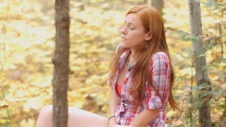 Иногда люди любят уходить в лес, чтобы уйти в себя. Приносим извинения за тавтологию, но по другому и не напишешь. Кто-то просто гуляет по лесной чаще, наслаждаясь успокаивающими запахом и звуками леса, кто-то садится на землю и медитирует. А вот наша рыжая красавица поступает по своему - берет с собой стеклянный дилдо и тихонько мастурбирует, чтобы никакие посторонние зрители не помешали ей улететь на другую планету от оргазма. Только лес, дилдо и она.