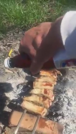 "Ну что, дорогие друзья! Приходит первомай" - наш рассказчик, и по совместительству оператор очень харизматично травит байки про рецепт для мяса, которое превратится в божественный шашлык, который будешь вспоминать всю жизнь. Для этого подойдут только лучшие свиные ребра высшего сорта, никакой закваски, красный перчик, соль, и больше ничего. "Особенно важно, если ты это делаешь на два мангала" - и тут камера переходит на пизду девушки, в которой он крутит черный фаллоимитатор, а на ее спине стоит литровый бокал пива. На этой ноте он поздравил всех с первомайскими праздниками и выключил камеру.