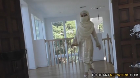 В мусульманских девушках всегда привлекает ее недоступность. И то, что она ходит по улицам в хиджабе, лишая глаза проходящих мимо визуального доступа к своему телу. Но если этот наряд не черный, и разукрашен какими-то стразами, значит с этой девчонкой не все так просто. Это знал и негр, который увидел данную особу у американского захудалого мотеля, и очень захотел запретный плод. А он оказался вовсе не запретным, а очень даже сам хотел отведать длинного и толстого хуя, поэтому девчонка мигом отсосала прямо в своем одеянии, а потом сняв всю эту мишуру, отдалась раком черному властелину.