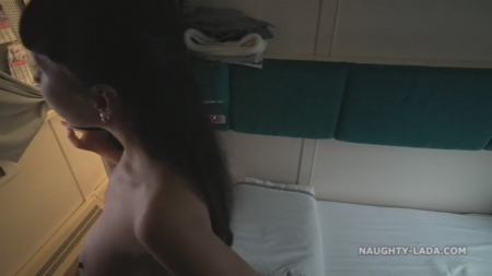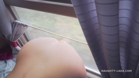 Когда вы арендуете целое купе в поезде, а затем закрываете дверь в тамбур, то можно начинать творить безумные вещи. Например, эта русская брюнеточка, ощутив свободу и вседозволенность, решила не только станцевать стриптиз, раздевшись догола, но еще и вольготно помастурбировать, глядя в бесконечно пролетающие поля и города за окном вагона. Оператор снимал все происходящее с дивной педантичностью, снимая не только общие планы, но и части тела девушки вблизи, за что получил поощрительную награду в виде возможности посовать свои пальчики ей в киску. Хотя кто знает, может они занялись страстным сексом, как только камера выключилась?