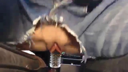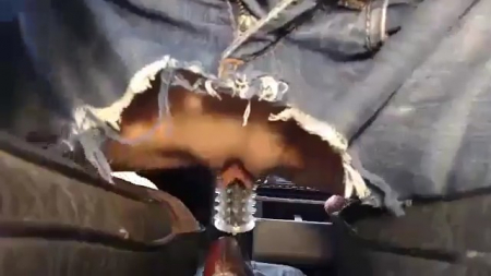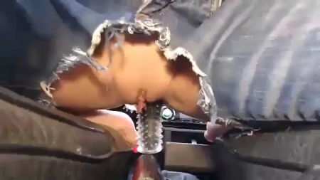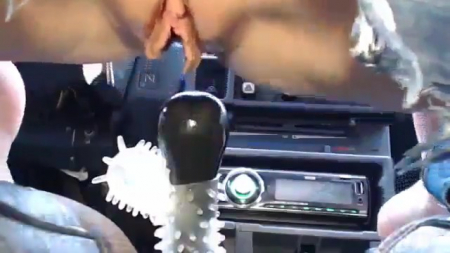 Молодая бестия, чтобы как-то скоротать время в машине (она ждет водителя автомобиля) придумывает себе потрясающее занятие. Девушка разрывает джинсы и начинает садиться неподготовленной киской на коробку передач. Но прежде милашка одевает на коробку передач презерватив с пупырышками - для усиления наслаждения. К тому же девушка снимает на видеорегистратор свои сексуальные утехи крупным планом.