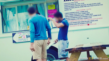 Многие хотели бы открыть свой бизнес, и передвижная лавка с едой - один из способов сделать это недорого. Причем это особо популярно в США, где в маленькие городки именно приезжает машина со всякими вкусностями. Проблема в том, чтобы во время обслуживания клиентов не захотелось жестко ебаться, как у этого парня, чтобы весь бизнес не пошел на смарку. Девушка-продавец конечно держалась какое-то время, пытаясь принять заказы, пока ее шпилит сзади ее бойфренд, но очень скоро и у нее слетели мозги с катушек, и они начали ебаться в фургоне со всей силы, пока покупатели стояли на улице и били по фургону кулаками.