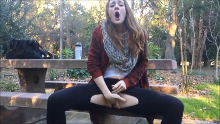 Девчонка незаметно мастурбирует в парке отчего сладко стонет