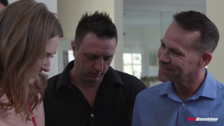 Сегодня ее парень сказал, что в течение дня он приготовит ей сюрприз, так что к моменту истины нужно выглядеть превосходно. Леди как раз подбирала себе нижнее белье, и вот этот красный набор смотрелся на ней просто бомбезно. Тут в гардеробную заходит молодой человек, который просит барышню спуститься вниз по лестнице, ведь сюрприз уже готов. Прямо в одних трусах и лифчике она быстренько спускается вниз... а там стоят его четверо друзей, надрачивающие свои члены. Пришлось отсосать сразу у всех, и судя по довольному лицу девчонки, ей все вполне понравилось.