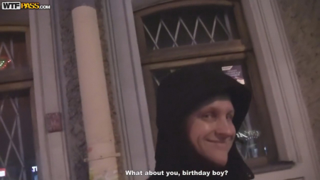 У чувака день рождения и вообще юбилей, а он с его друзьями-недобитками шляется по ночному городу. Непорядок - надо срочно порадовать человека. Выход найден - друзья знакомятся с красивой девушкой на улице, которая очень спешит, но только на словах. Ее удается раскрутить на разговор, только вот между делом ее все заносит в какие-то подворотни, чтобы парни отстали. Но они еще те крепкие орешки, и предлагают шлюшке запилить имениннику минет за сто долларов. Они находят какую-то будку, и счастливчик ебет ее как следует, кончая на лицо. А сто баксов, конечно, оставляет себе.